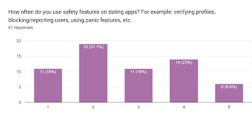 Extensive protective measures do not yield a proportional outcome with user-perceived safety, as users don't use advanced features. Hence, dating apps must focus on providing more value with limited features.